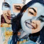 Portrait sur commande d'après photo. Tableau à l'a gouache et collage sur papier. Composition par Sylvie Forestier