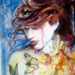 Séduite par la fluidité et la liberté qu’offre l’aquarelle, j'utilise les mêmes transparences sur mes toiles. J'ajoute à une acrylique légère les noirs profonds de l'Encre de Chine et la texture de papiers variés.